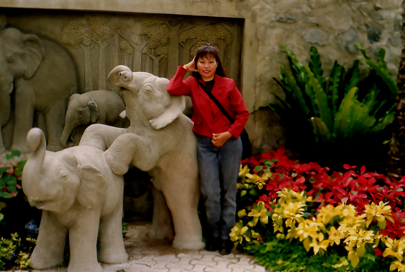Dem Park sind ausserdem noch Tiergehege angeschlossen, dort kann man sich so man will mit einem zahmen Bären und einem Tiger fotografieren lassen. Auch ist es möglich einem kleinen Tiger die Flasche zu geben, gegen extra Bezahlung natürlich. Für ein paar Bath kann man Hünchen kaufen, sie an eine Art Angel hängen und den Krokodilen zum Frass vorhalten, dabei springen sie beachtlich weit aus dem Wasser. Das überliess ich aber immer den Russen, so hatte ich die Hände frei zum fotografieren.