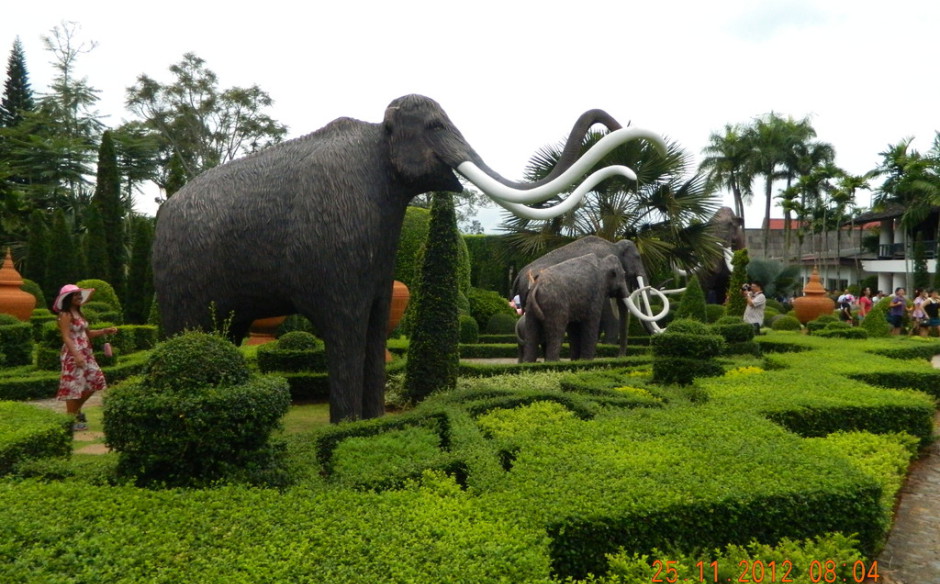 An der Sukhumvit Richtung Satahip, in etwa 15 Kilometer Entfernung ist der Nong Nooch Tropical Garden zu finden. Der Betreiber wollte zunächst auf diesem Areal eine Farm errichten, besann sich aber zum Glück anders und begann einen Tropischen Park zu errichten. Inzwischen bevölkern auch Tiere den Park und sind Gebäude im thai Stil dort zu finden. Mit einem Bähnchen kann man sich durch den Park fahren lassen, das finde ich aber nicht empfehlenswert, denn von dem Steg aus, der über den Park führt, hat man einen viel besseren Überblick. Nachher kann man den Park immer noch gut zu Fuss erkunden.