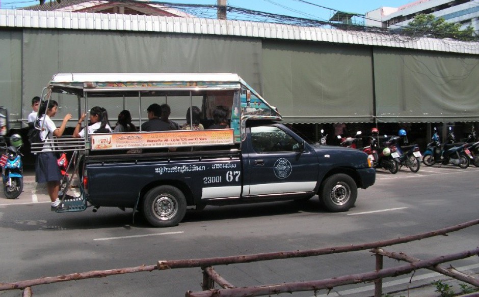 Schallsignal dem Fahrer zu verstehen, dass man aussteigen will, danach geht man zum Fahrer überreicht ihm 10 Bath und sie Sache ist erledigt. Es ist empfehlenswert immer 10 Bath Stücke in der Tasche